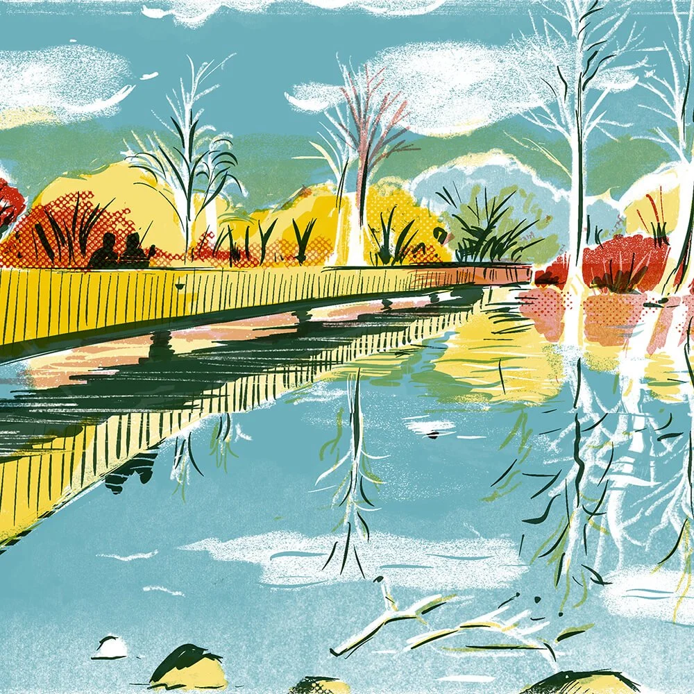 Daniel Haskett is an illustrator, printmaker snd artist whose work reflects an interest in the characters, colours and architecture from mid 20th century photography and literature. The photos of Saul Leiter as well as the stories of J.D Salinger lend themselves to the pared back aesthetic and dry humour behind his work.