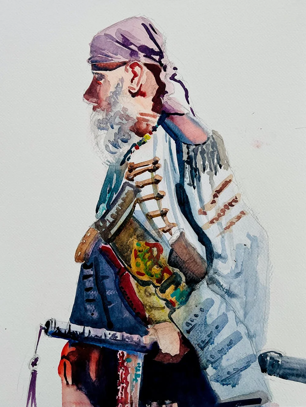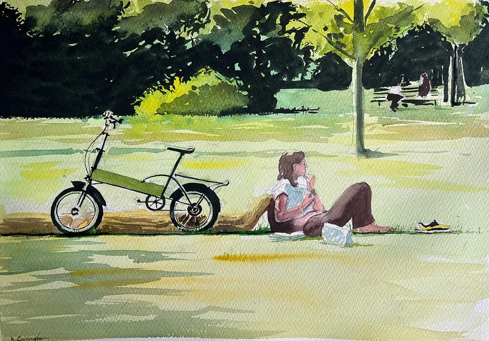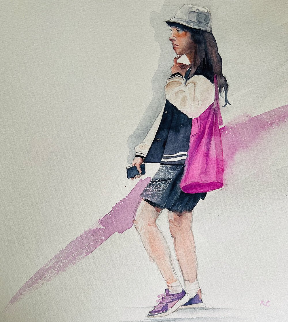 I paint watercolours of anything that catches my eye, typically figures in an environment and landscapes.