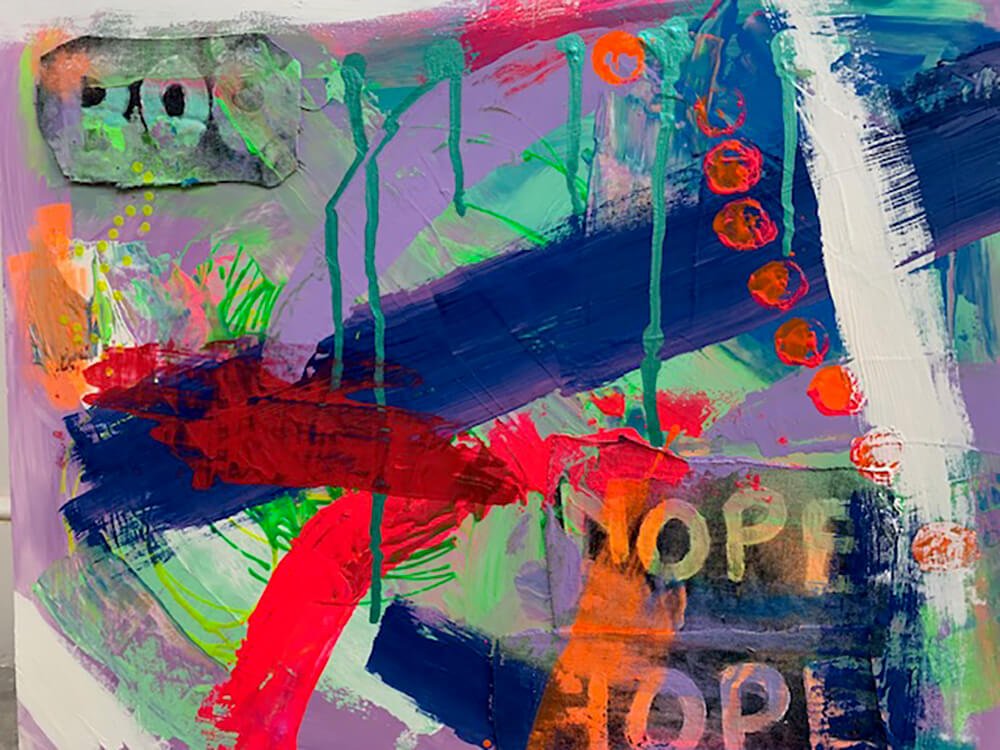 I’m a London-based abstract artist with strong family connections to the West Country. I use a variety of methods and tools to create my paintings, although my favoured medium is acrylic paint. You will find in some of my work that I also like to experiment with pens, chalk pastels, crayons, ink and watercolour. More recently I have been adding in texture and layers by using anything from sugar to seeds, packaging and fabric. I have an experimental approach and you’ll find a collection of the weird and wonderful, wild and bold on display.