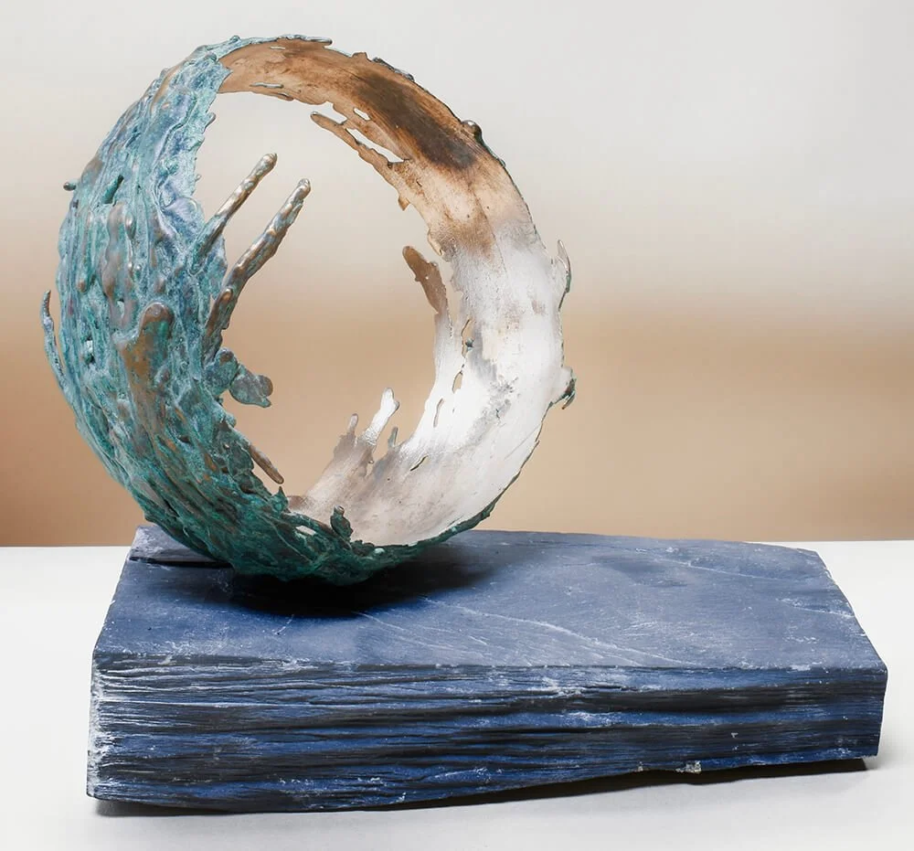 Inspired by nature and human engineering, Neil’s sculptures explore themes of chaos, entropy, and the balance between natural forces and human intervention. Each artwork is carefully handcrafted, reflecting his commitment to technical excellence and creative innovation. His unique oxidised blue patinas are a defining characteristic, adding depth and dynamic beauty to his creations.