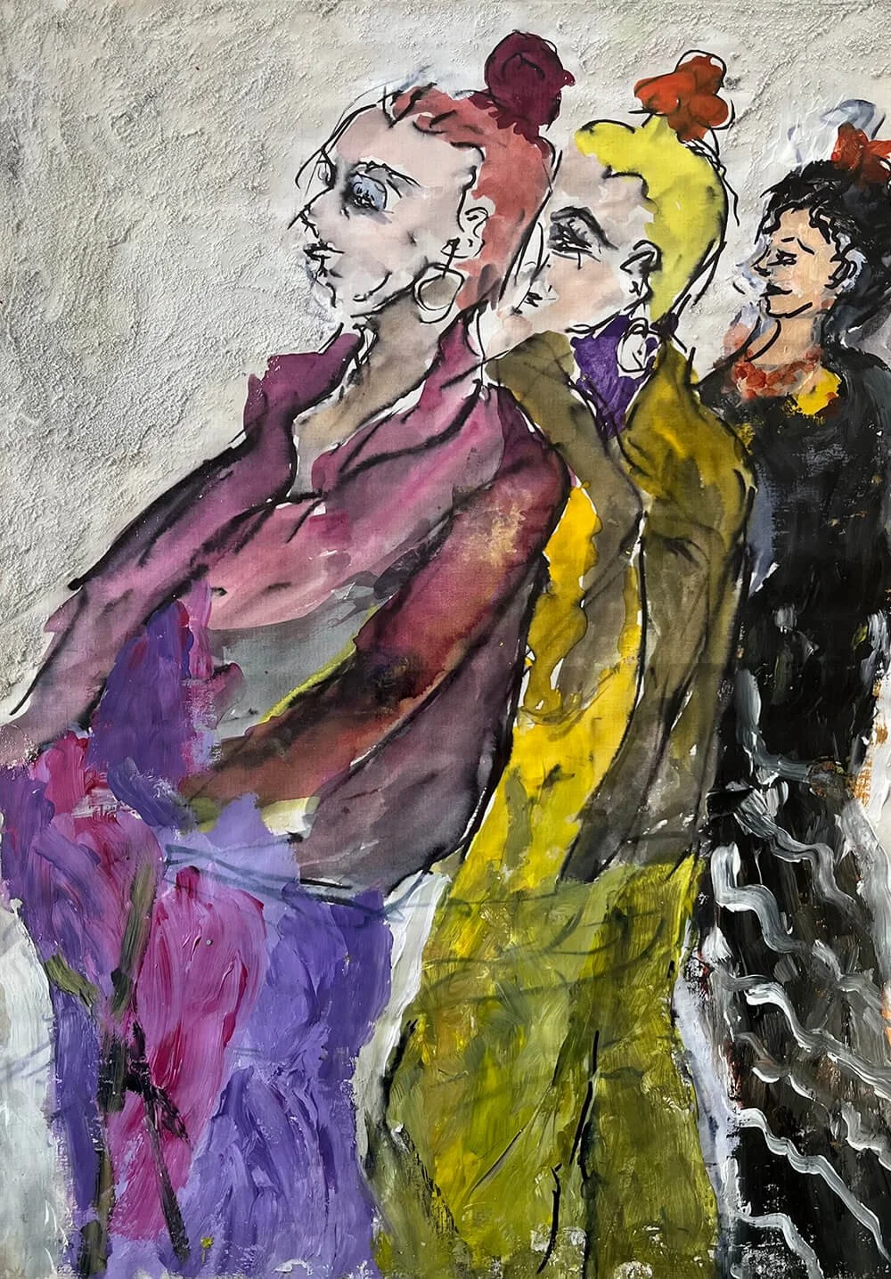I like to use strong colour, verve and a touch of humour in paintings that give a twist to reality or idealised visions from my imagination. I enjoy ranging across different styles of work. I paint people, landscapes, buildings, interior settings, or sometimes just go with where colour and shape take me. Inspired by places I've been to, sights I've seen, and people I've met, I seek exuberance and a little chaos rather than total harmony. Over the course of a long life, painting has absorbed me, and given me a focus through which to view, appreciate and engage with the world around.