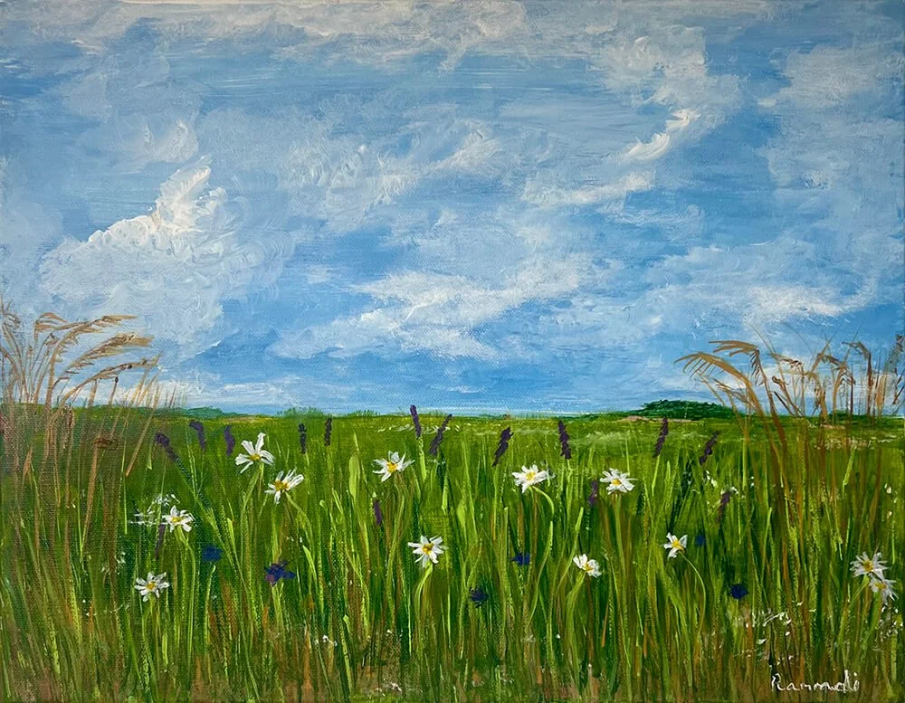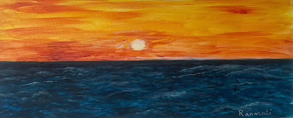 I have lived in Sri Lanka, Zambia and Kenya before arriving in the U.K. in the early ‘80’s as an undergraduate. Having studied English literature at university, I often find inspiration through descriptions of nature found in literature and poetry. Inspiration also comes from memories of the places I have lived in during the past, and well as from my everyday surroundings. The paintings often depict natural spaces, favouring the vast expanse of the ocean, the rising and setting sun, woodland scenes, as well as climate and season related settings. The chosen subject matter intends to promote vibes that are filled with harmony, peace and tranquillity, through the use of lighting and colour, to create the mood. I paint mostly on canvases or canvas paper with acrylic paint, but also work with watercolour, oil pastels and charcoals occasionally.