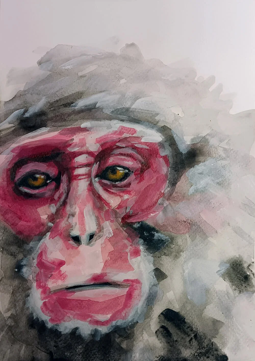 I am a South African artist, recently moved to the UK with my husband of 25 years. We love London, and the freedom and access to cultural and historical venues, and the pockets of nature that emerge from the cracks. After many years of work in diverse industries, including film/TV, I returned to university in 2008 and was a awarded my Visual Art BTech degree (with cum laude) at age 40. For several years my work has been inspired by our green world and human/animal relationships, and particularly the conflict and damage caused by human over-consumption of natural resources. I am drawn to our primate family, excavations in the seemingly endless search to understanding ourselves better, and the messages that certain animals present to us: the monkey occupying one's thoughts and dreams is a reminder of the inner child, the innocence of youth, uninhibited playfulness and not taking oneself too seriously, laughter and frivolity, connection and community. My works are a combination of stylised realism and abstraction, via an exploration of joyful colour and spontaneous mark-making. In painting each animal I acknowledge their 'person'-al characteristics, their uniqueness - I see them as individuals - advocating their desire to live and thrive as a species, in their natural environments. I leave you with a monkey blessing of unbridled creativity and practical problem solving, aswell as finding the hidden meanings in events and interactions, and ultimately celebrating achievements, big and small.
