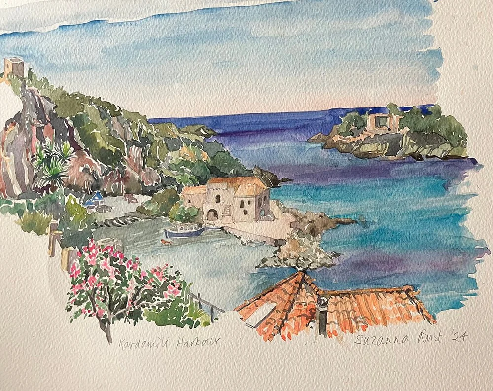 I trained at Leicester College of Art and have since worked as an artist On graduating I worked as a Visualiser in advertising, and also illustrated children's books while my own children were young, I also ran Art Workshops for adults with special needs. I have always continued to create paintings and prints and have had several solo exhibitions in England and France. I find inspiration in the landscapes of Britain, France and Greece. I later studied Iconography and have had many commissions. St Barnabas, W5, has an Icon that I wrote for them for their centenary. I am pleased to receive commissions for both Icons and paintings.