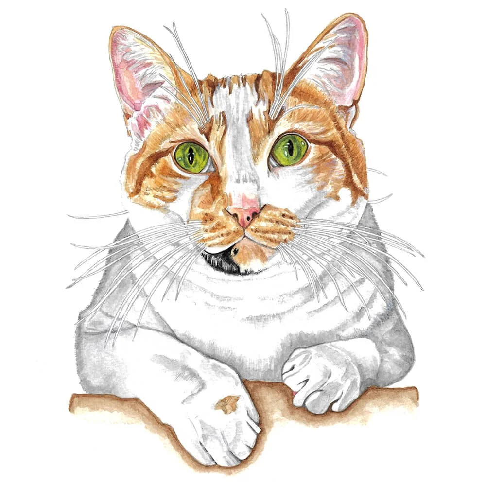 She specialises in hand-painted, characterful and expressive watercolour portraits of felines and works to commission. She sells her work internationally.