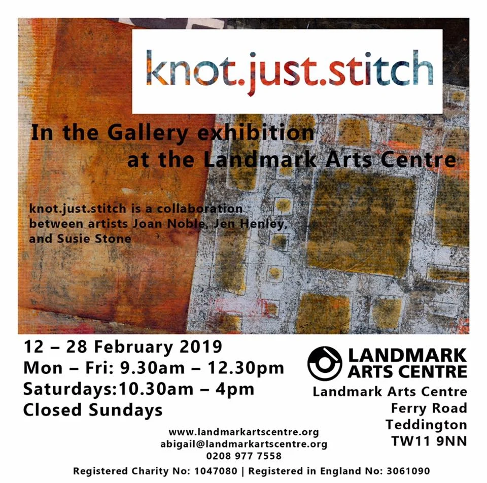 BEAT member knot.just.stitch will be exhibiting a selection of their work at the Landmark Arts Centre, Teddington, 12-28 February. The group, Joan Noble, Jen Henley & Susie Stone, were invited to showcase their work as a result of exhibiting at BEAT 2018.